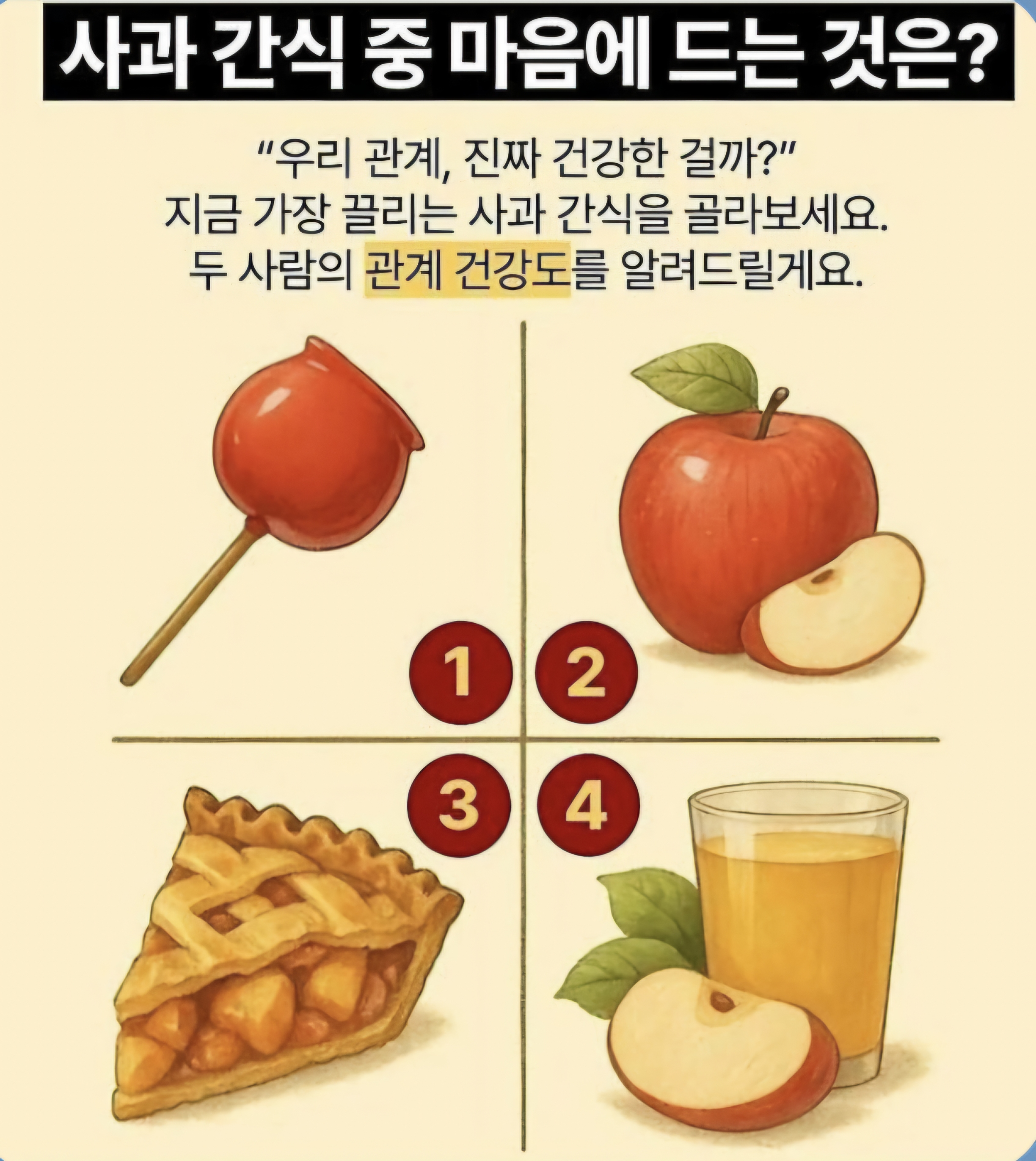 지금 가장 끌리는 사과 간식을 골라보세요.