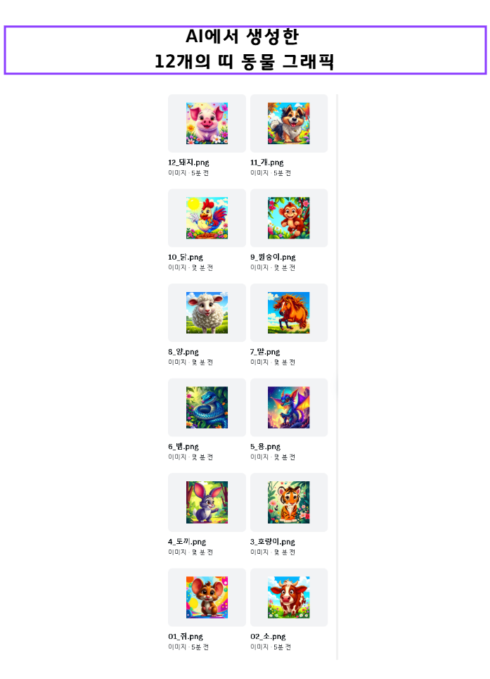 선생님께서 미리 만들어오신 12 띠 동물의 깜찍한 디자인 결과물에 모두 재밌어하고,