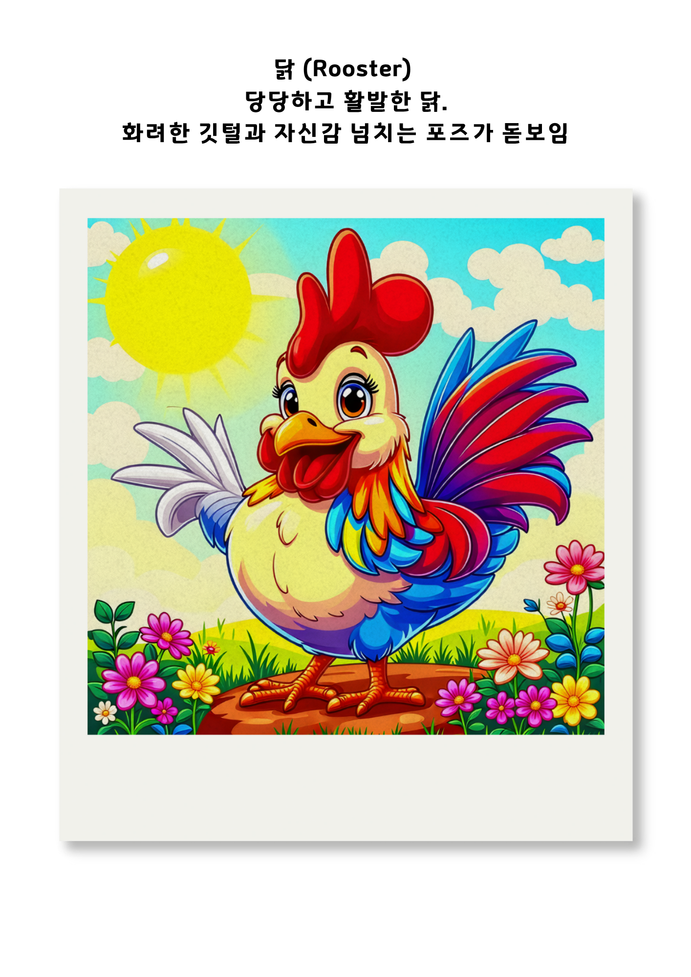 예: “밝고 따뜻한 감성의 신년 축하 카드 / 꽃과 리본 장식 / 파스텔 색감”
