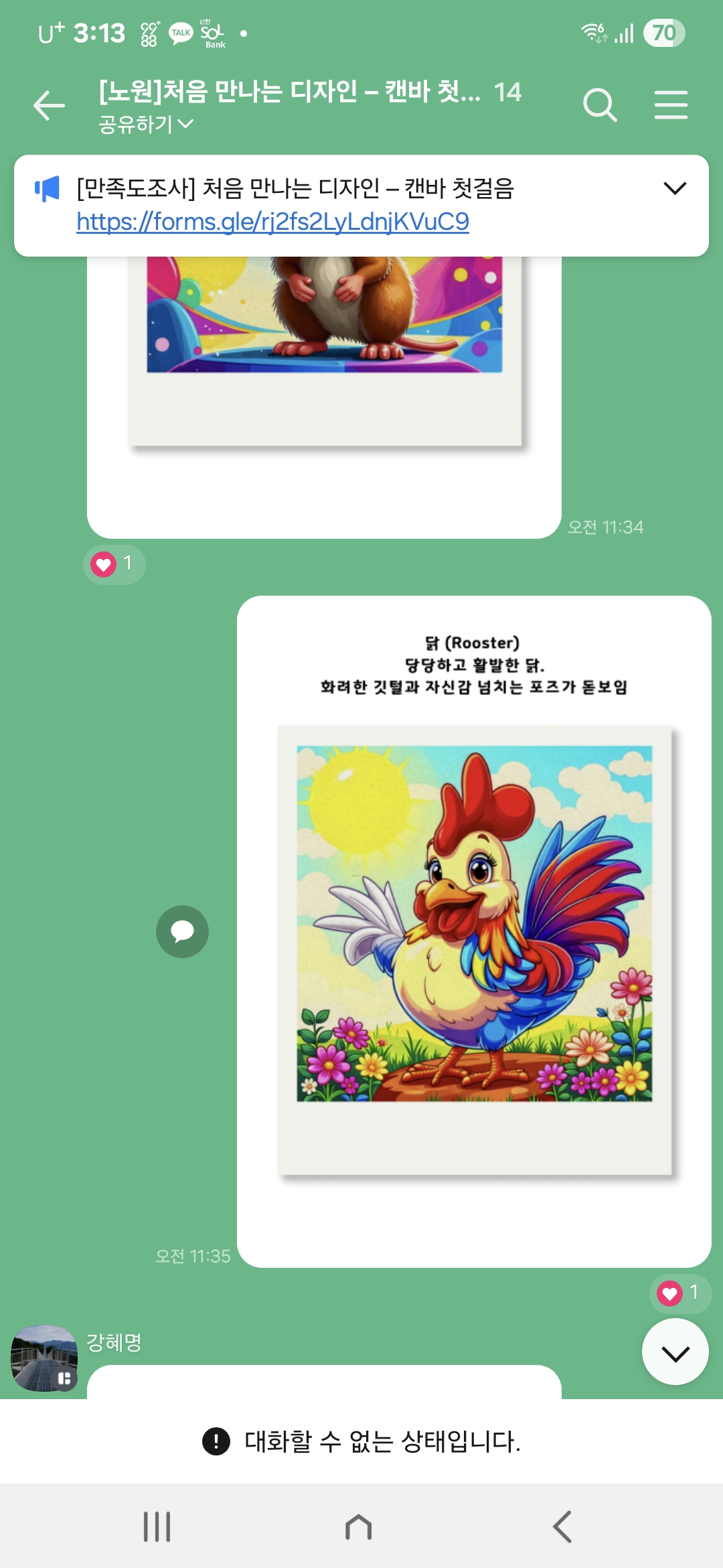 직접 하나하씩 편집하는 과정을 연습해 보았답니다. 마지막으로 자신의 띠를 단체 카카오톡방에 공유도 했어요.