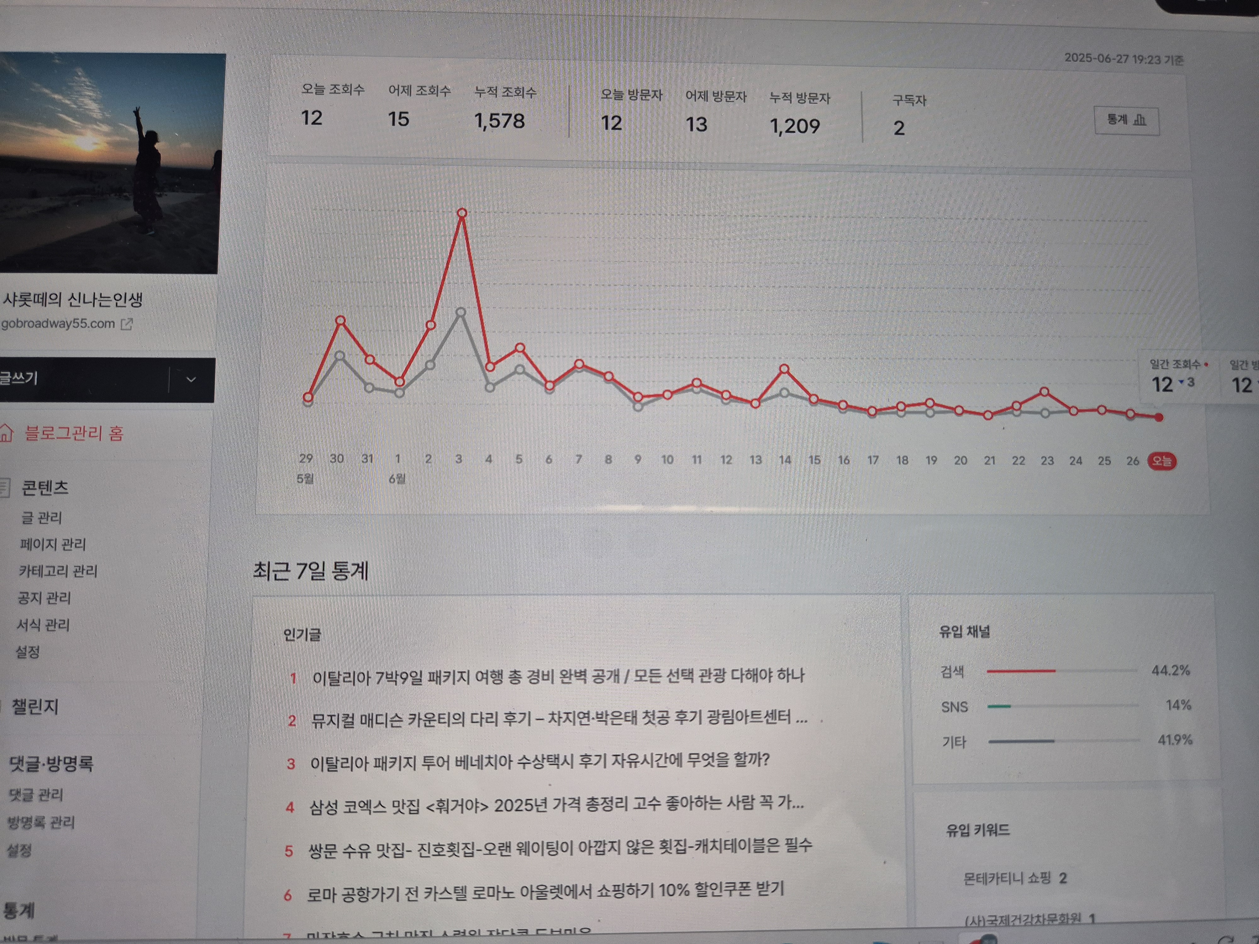 - 제대로 유입 터지는 글이 한두 개 생기기 시작함