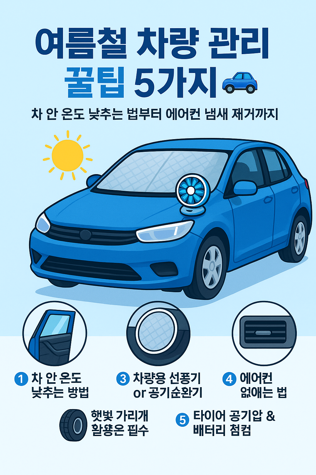 오늘은 여름철에 꼭 알아야 할 자동차 관리 꿀팁 5가지를 소개해드릴게요.