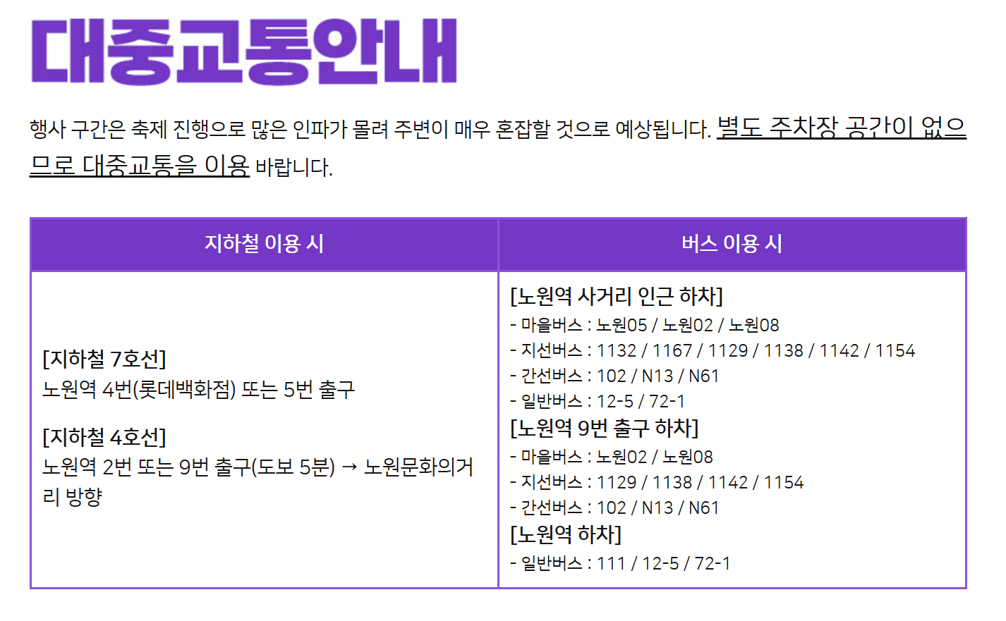 - 장소: 노원역 KB국민은행롯데백화점순복음교회 앞 555m 구간